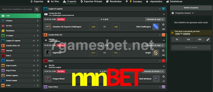O nnnbet oferece uma grande seleção de opções de apostas em e-sports com probabilidades competitivas